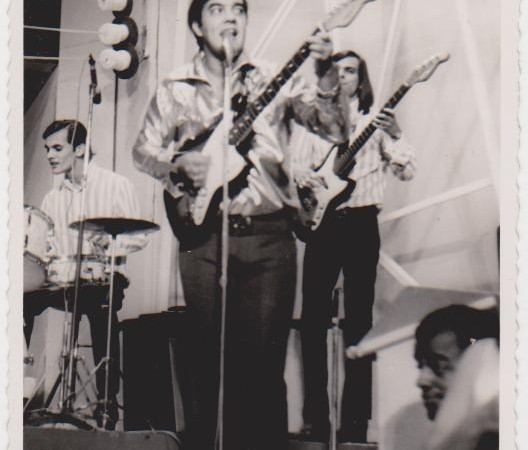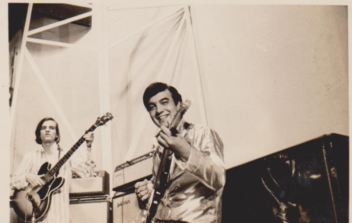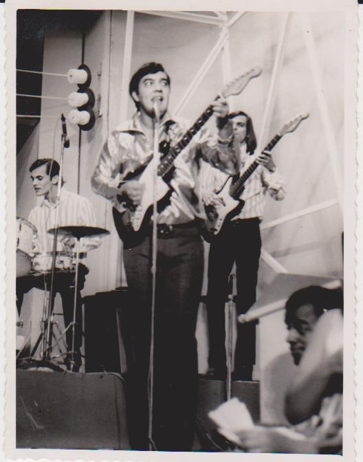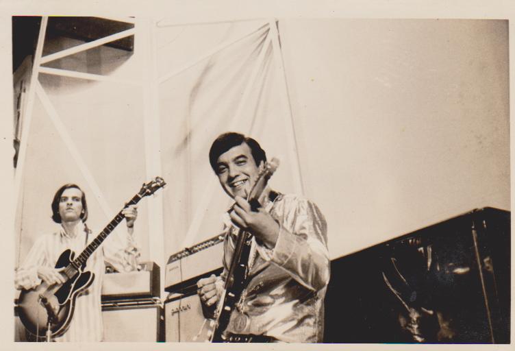 Eu com meu baixo Appolo/Giannini e Erasmo numa apresentação do Programa Jóvem Guarda Em Alta Tensão no Rio de Janeiro.