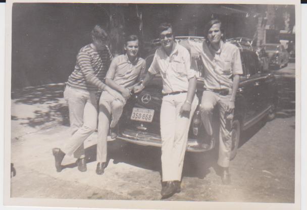 Régis, Rubinho, Erasmo e Eu (Raul), em uma das viajens que fizemos ao Uruguai prá shows, fizemos as poses no taxi e o motorista bateu a foto.